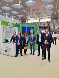 كان برنامج Interreg NEXT MED أحد المبادرات القليلة التي تمت دعوتها للمشاركة في حفل الختام، حيث أتيحت له الفرصة للصعود على المسرح وتقديم الدعوة القادمة لمشاريع التحول الأخضر. أمام السلطات السياسية والاقتصادية رفيعة المستوى من الدول العربية، قدم عرض تقديمي موجز للدعوة، مؤكدًا على الفرصة للعديد من البلدان الممثلة للوصول إلى تمويل البرنامج.