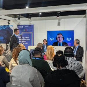جناح التنقل المناخي، بمشاركة يوسف عروج (مؤسسة شباب المتوسط) وفاليريا سينيسي (مؤسسة فريدريش ناومان).