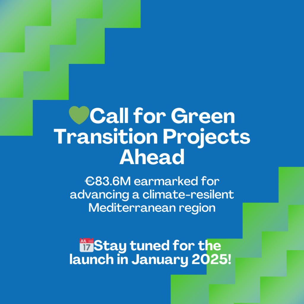 وأخيرًا، كشفنا عن الدعوة المقبلة لمشاريع الانتقال الأخضر، مخصصين ميزانية قدرها 83.7 مليون يورو لتعزيز منطقة متوسطية قادرة على مواجهة التغيرات المناخية. من المقرر إطلاق الدعوة في منتصف كانون الثاني/ يناير 2025.