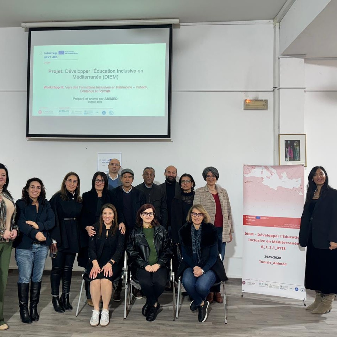 DIEM’s Tunisian partner ANIMED organized an in-person workshop on March 26, 2026, at the Faculty of Letters, Arts and Humanities of the University of Manouba, bringing together academics, heritage professionals, institutional representatives, and training experts.