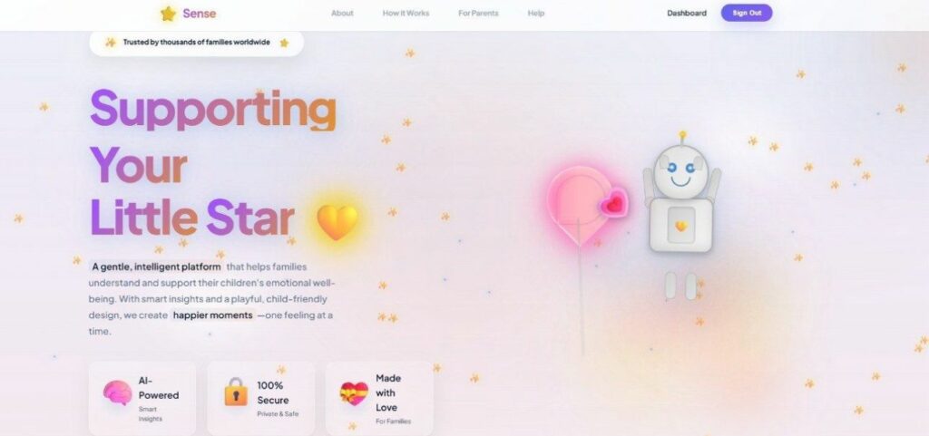 SENSE is a dual-interface AI platform for pediatric mental health triage, built for children living through crisis. It operates on two levels at once. For children aged 6 to 15, SENSE is a warm, safe digital space a “Brave Space” where they can draw their feelings onto a Magic Ball analyzed by AI for emotional indicators, journal their emotions, scratch away the thoughts that weigh them down, and watch an AI transform those dark words into something warm and full of hope, log what they are grateful for, and practice guided breathing exercises, and earn points with every activity redeemable for online rewards that make showing up feel worth it. Every interaction is quietly and ethically analyzed by AI in the background – not to diagnose, but to listen.