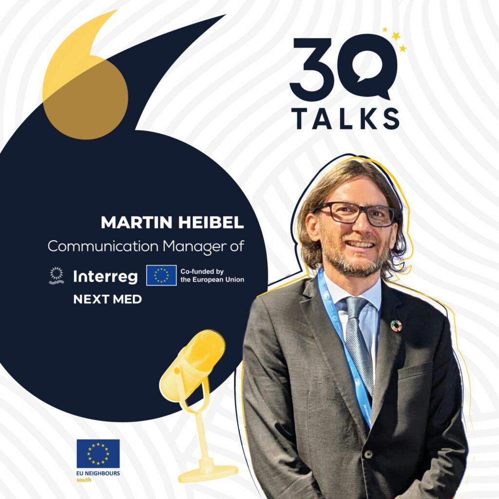Inside look at Interreg NEXT MED with Martin Heibel, Programme’s Communication Manager, in this EU Neighbours 3Q series spotlighting the people behind EU-funded initiatives and their impact.