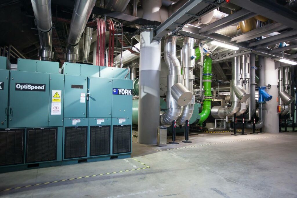 Cooling energy is produced during off-peak hours, when electricity demand and costs are lower, and stored in the form of ice. During periods of high demand, this stored cooling energy is released, reducing the need to generate additional power at peak times. The system combines compression cooling units, natural gas boilers, and three ice-storage tanks with a total capacity of 120,000 kWh, allowing the plant to respond quickly and flexibly to urban cooling needs.