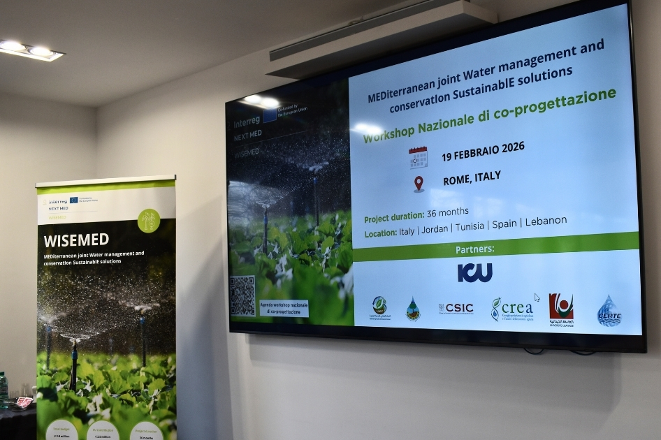 Rome, 19 February 2026 – The National Co-Design Workshop of the WISEMED – MEDiterranean joint Water management and conservatIon SustainablE solutions project, funded by the European Union under the Interreg NEXT MED Programme, was held at ITABIA – Italian Biomass Association (Via Venafro, 5, Rome).