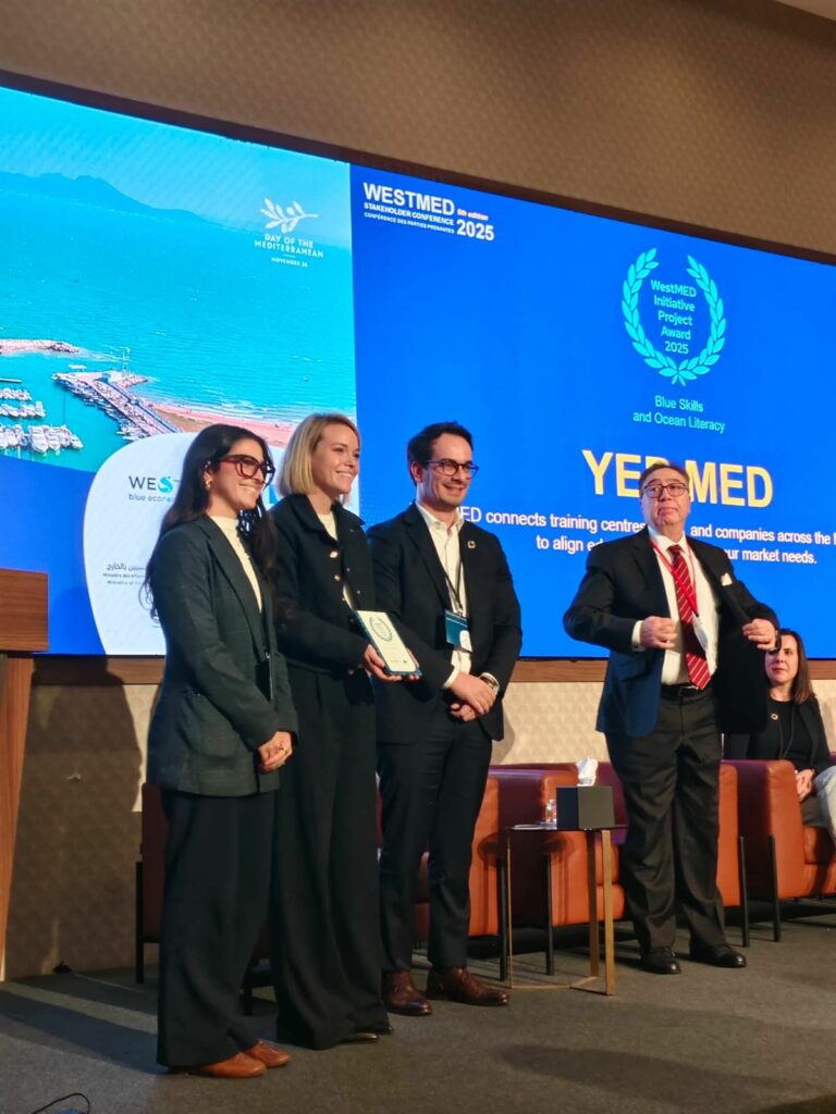 Escola Europea, lead partner of the YEP MED project — “Youth Employment in the Ports of the Mediterranean” — has recently been honoured with the Blue Skills & Ocean Literacy Award at the 2025 WestMED Initiative* Stakeholder Conference (Tunis, 28 November 2025). This recognition crowns YEP MED as a successful and impactful project in the Mediterranean maritime-logistics sector.